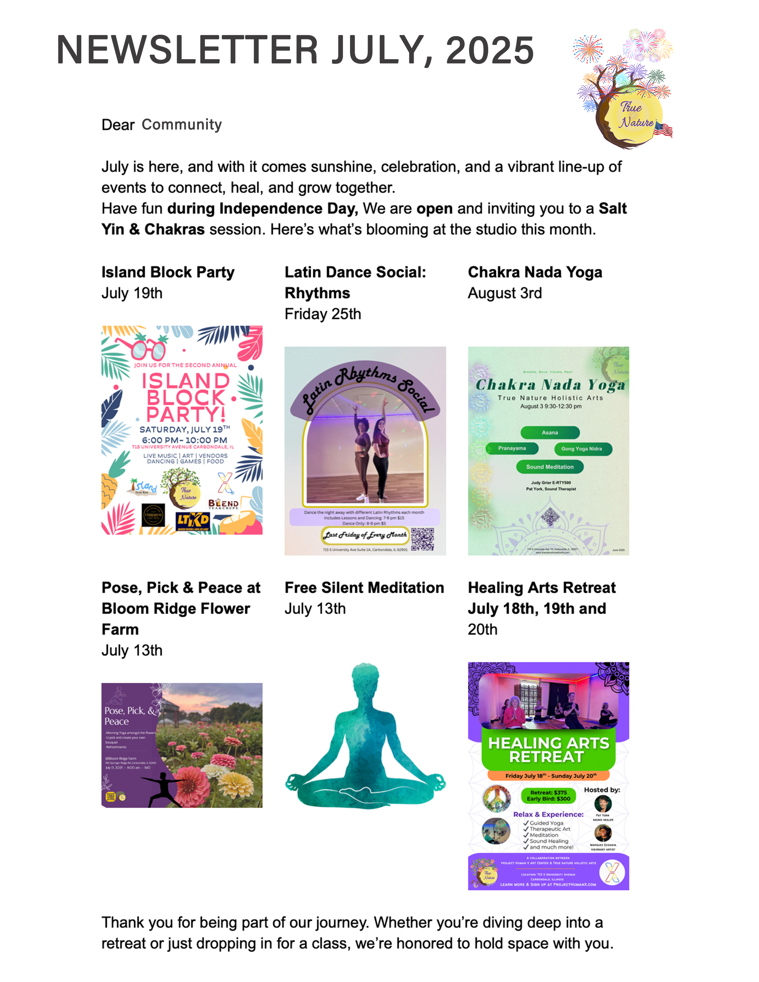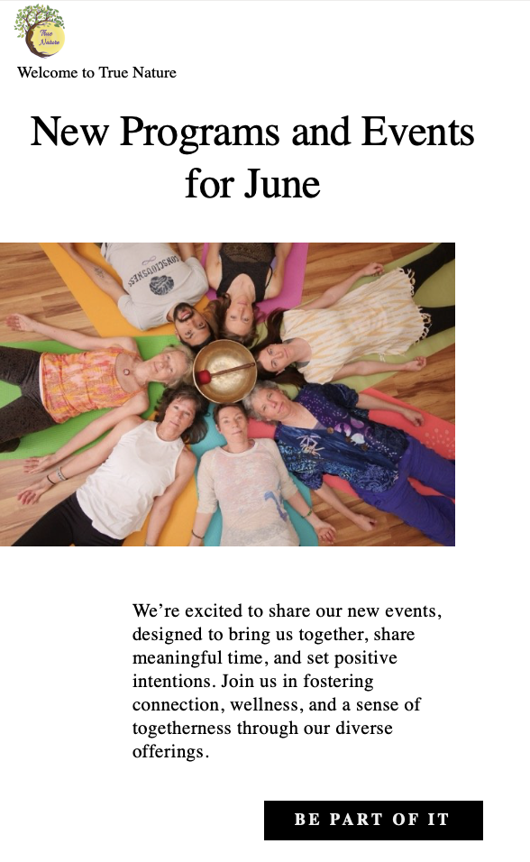 If you’re new to our community, we warmly invite you to join us in September. Explore our free programs, participate in our beginner yoga workshop, or take advantage of our introductory first-month rate of unlimited yoga and sound for $59. Together, let's continue building a supportive and thriving community at True Nature.