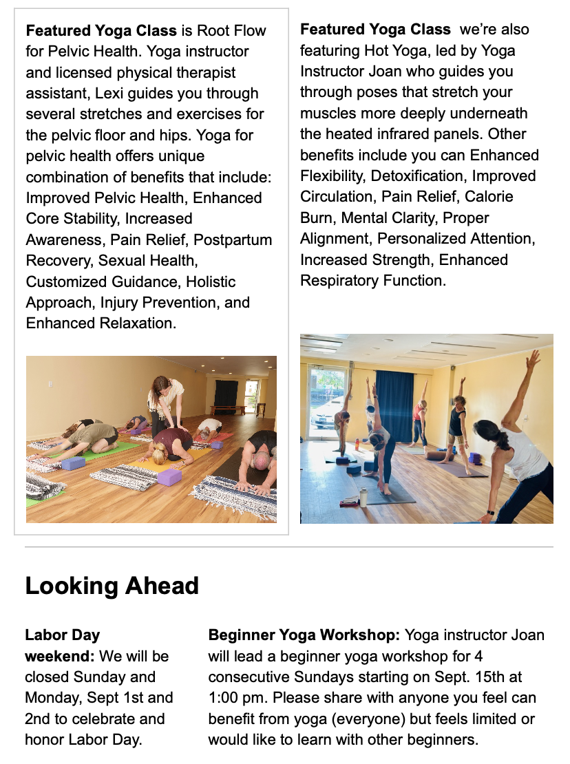 Practicing alongside others in our classes fosters a unique sense of support and connection. It sustains us, challenges us, and holds us accountable, reminding us that we’re not alone on this journey. As we approach the end of August, we celebrate five months since opening and the steady formation of a vibrant yoga community. The bonds we’re building, through shared practice and genuine friendship, are something we deeply cherish.